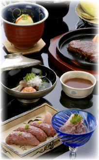 | 本格的な和の体験、畳とお座敷で日本文化を満喫いただけます。お座敷に慣れないお客様はテーブル席を選択いただくことで、快適にお食事をお楽しみいただけます。 |